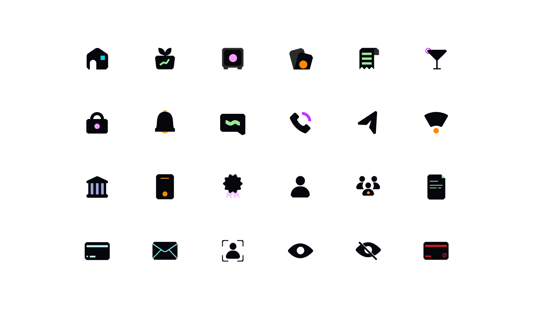 In this project, I designed a set of icons for a FinTech brand (under NDA) focused on solving key challenges in community banking including seamless money movement, group savings, and access to business capital.